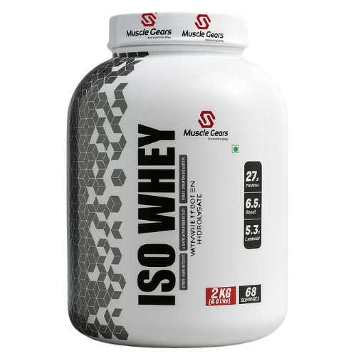 Muscle Gears ISO Whey Protein is a premium whey protein isolate in India, designed for rapid absorption and lean muscle gains. With minimal fats and carbs, it delivers a potent dose of protein and amino acids, making it perfect for lean muscle supplements, weight loss, or maintaining an active lifestyle. Gentle on the stomach, this best whey protein isolate for weight loss speeds up recovery and supports your fitness goals.